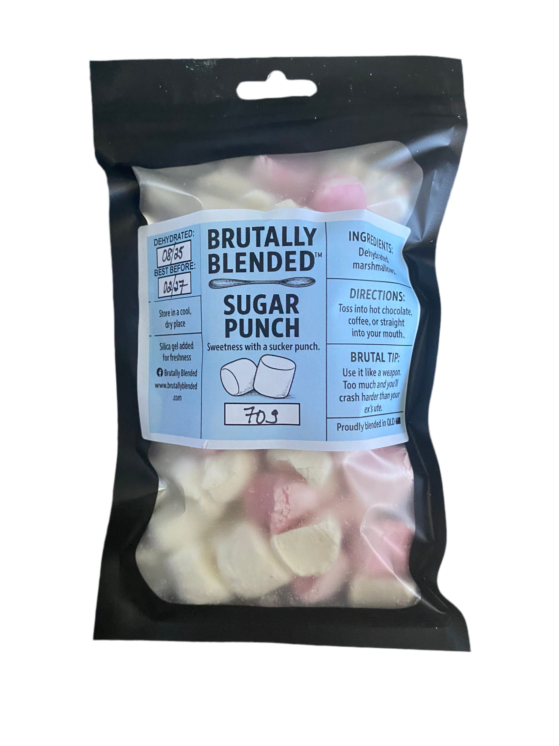 Don’t be fooled by the soft look — these dehydrated marshmallows pack a savage crunch. Drop them in hot chocolate, scatter them over cupcakes, or smash them straight from the bag. Sweet, brutal, and dangerously addictive.